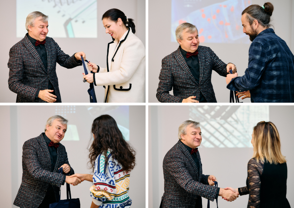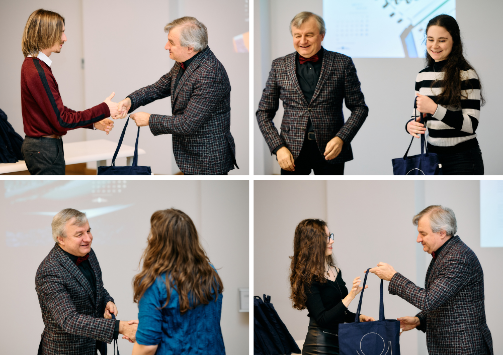 На специална церемония в зала 20 ректорът на НБУ, проф. Пламен Дойнов, д.н., връчи първите календари лично на авторите и поздрави както студентите, така и техните преподаватели за успешно реализирания проект.